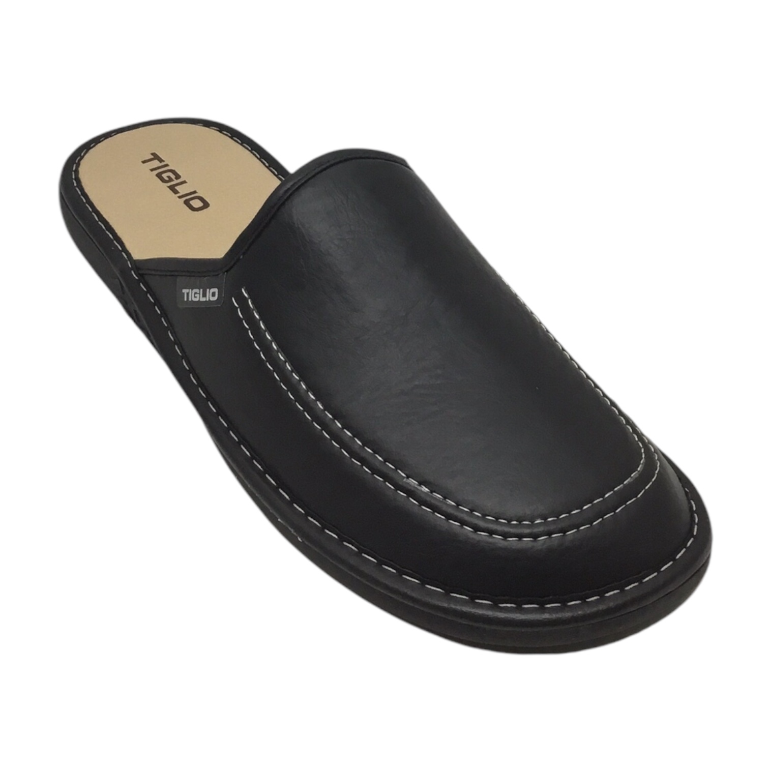 Ανδρική χειμερινή παντόφλα της εταιρίας TIGLIO. Είναι κατασκευασμένη από άριστης ποιότητας υλικά. Έχει σταθερή και αντιολισθητική σόλα. Στο πάνω μέρος έχει ποιοτικό συνθετικό δέρμα. Κατασκευασμένη στην Ιταλία.