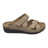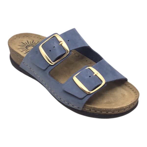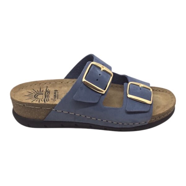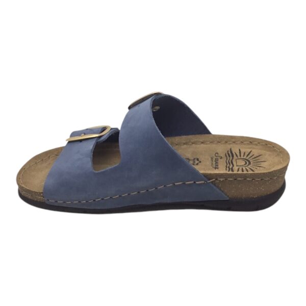 Γυναικεία δερμάτινη ανατομική παντόφλα της εταιρείας SUNNY SANDALS. Είναι κατασκευασμένη από γνήσιο μαλακό δέρμα. Με δερμάτινο, ανατομικό πάτο νέας τεχνολογίας με αφρό μνήμης και ελαφριά σόλα ύψους 4 εκατοστών και φιάπα ύψους 2 εκατοστών. Ρυθμίζεται με δύο μεγάλους τοκάδες.