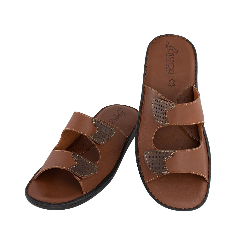 Ανδρικά σανδάλια, της εταιρίας Castor Anatomic. Είναι κατασκευασμένα από δέρμα, ένα υλικό που αναπνέει βοηθώντας στην αποφυγή δυσάρεστων οσμών, ενώ παράλληλα καθαρίζεται εύκολα. Προσαρμόζονται στη φόρμα του ποδιού παρέχοντας επιπλέον άνεση. Διαθέτουν ανατομικό σχεδιασμό για άνετο βάδισμα ακόμα και για τις πιο απαιτητικές μέρες.