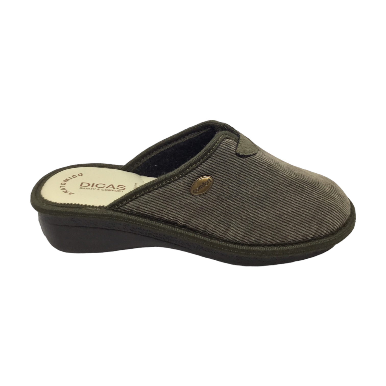Γυναικείες παντόφλες από την χειμερινή συλλογή της dicas,προσφέρουν άνεση και είναι χαρακτηριστικά μαλακές στο πάτημα. Κατασκευασμένες από πρώτης ποιότητας ύφασμα τύπου κοτλέ . Διαθέτουν δερμάτινο ανατομικό πάτο, και αντιολισθητική σόλα με 3cm τακούνι.