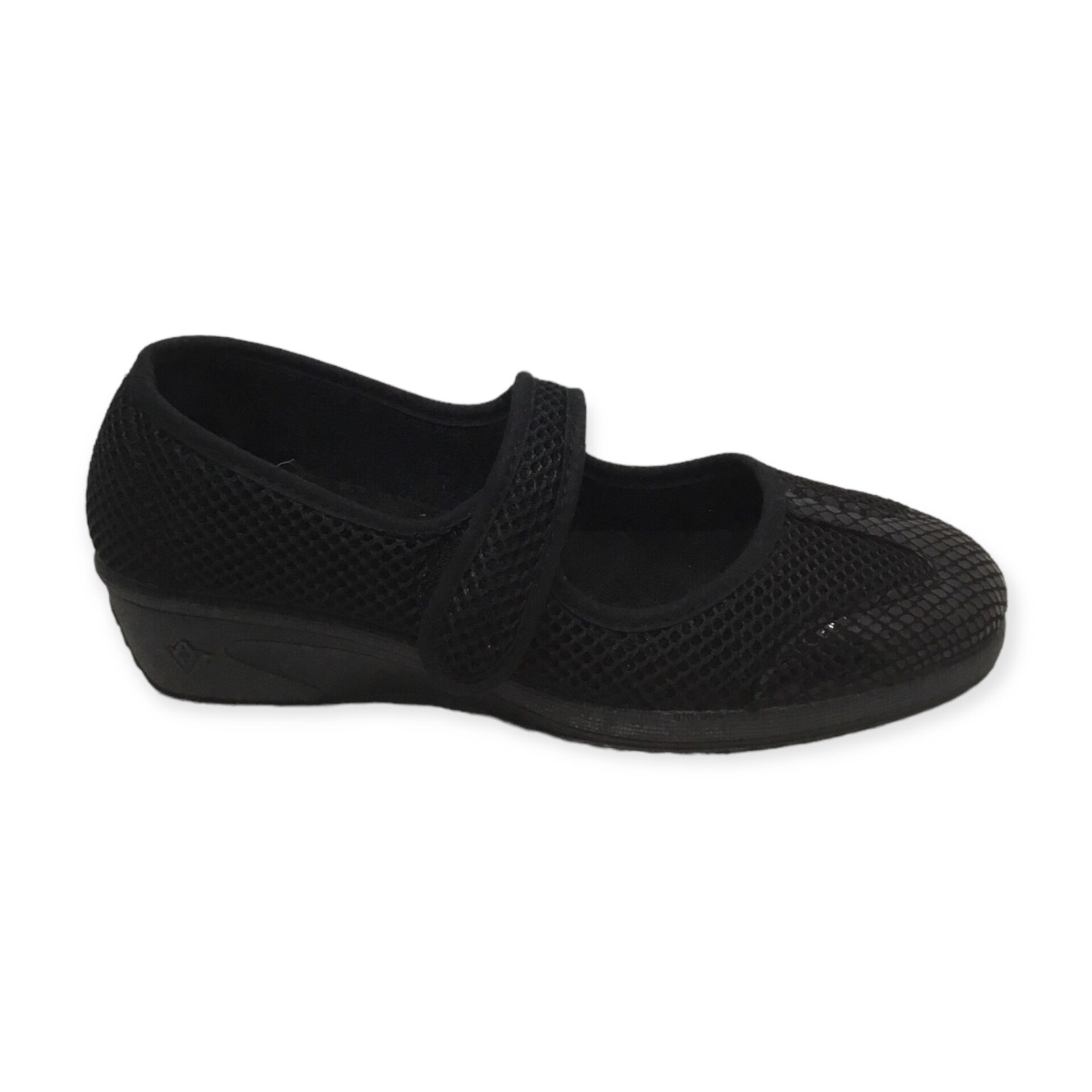 Γυναικείες κλασσικές, παντόφλες medies. Λόγω της βαμβακερής εσωτερικής επένδυσης προσφέρουν άνεση και δροσερή αίσθηση. Αγκαλιάζουν σωστά τα πόδια δίνοντας έτσι σταθερότητα στα βάδισμα σας. Κατασκευασμένες εξωτερικά από ύφασμα με πόρους έτσι ώστε να αφήνουν τα πόδια να αναπνέουν. Τέλος η αντιολισθητική σόλα από λάστιχο τις κάνει να είναι μαλακές και ευλύγιστες για όλες τις ώρες,εντός και εκτός σπιτιού.
