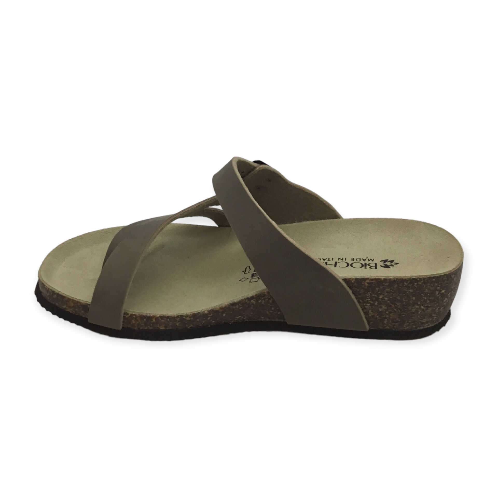 Γυναικεία ανατομική παντόφλα BIOMODEX με δερμάτινο ανατομικό και αντιολισθητική σόλα με λίγο υπερυψωμένο τακούνι Ρυθμίζετε με δυο τοκαδάκια.
