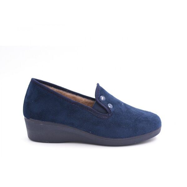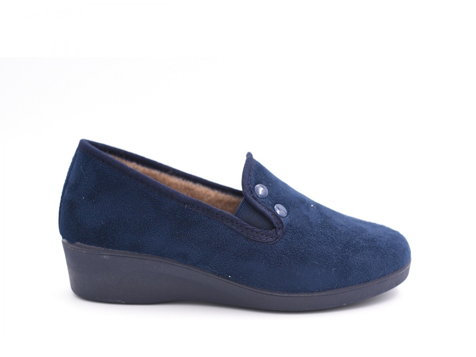 Γυναικείες κλειστές παντόφλες κλειστές από μαλακό ύφασμα με βελουτέ υφή και ξεκούραστο τακούνι. Με εύκαμπτη αντιολισθητική σόλα.