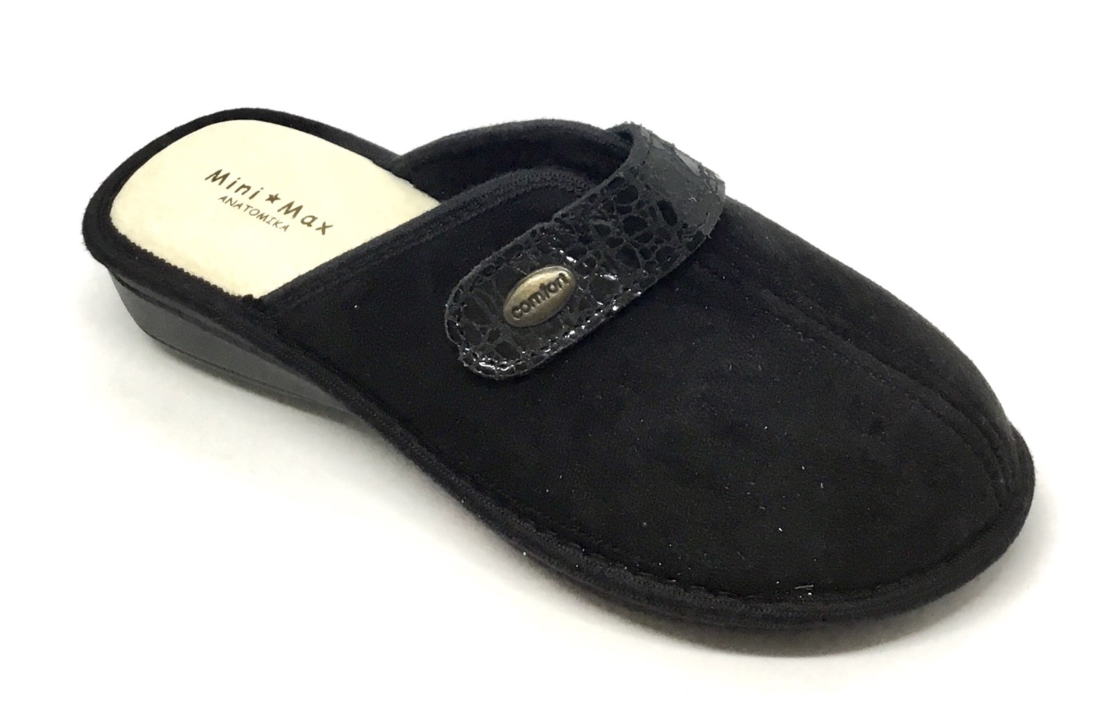 Γυναικεία χειμερινή παντόφλα της εταιρείας MINI-MAX. Κατασκευασμένη από άριστης ποιότητας υλικά. ‘Εχει τακούνι ύψους 4 εκατοστών για καλύτερη στήριξη της πλάτης. Η σόλα της είναι ελαφριά σταθερή και αντιολισθητική κατασκευασμένη από πολυουρεθάνη. Έχει δερμάτινο, ανατομικό πάτο και απαλή φόδρα. Η φόρμα της είναι κανονική. Ιταλικής κατασκευής.
