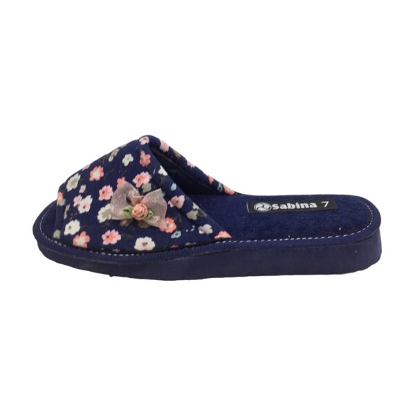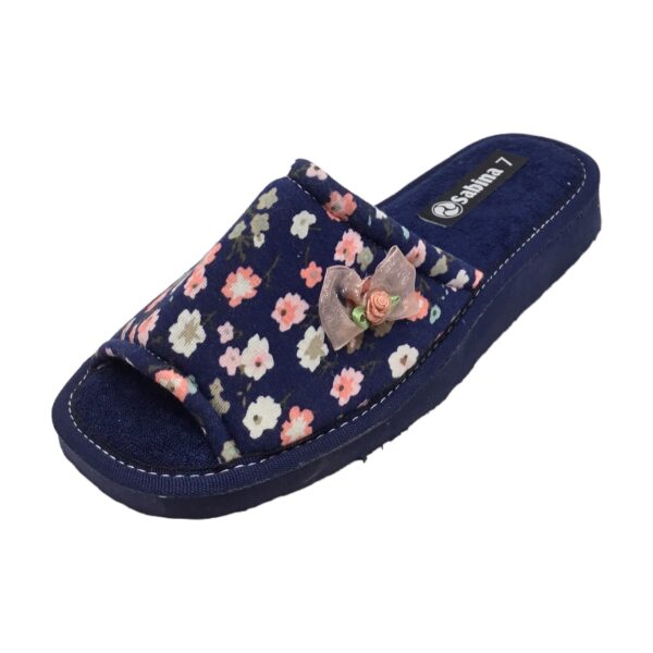 Γυναικείες παντόφλες καλοκαιρινές Sabina από 100% βαμβάκι , με μαλακό αναπαυτικό πέλμα και αντιολισθητική σόλα. Διαθέτουν κανονική φόρμα. Προϊόν ελληνικής κατασκευής.