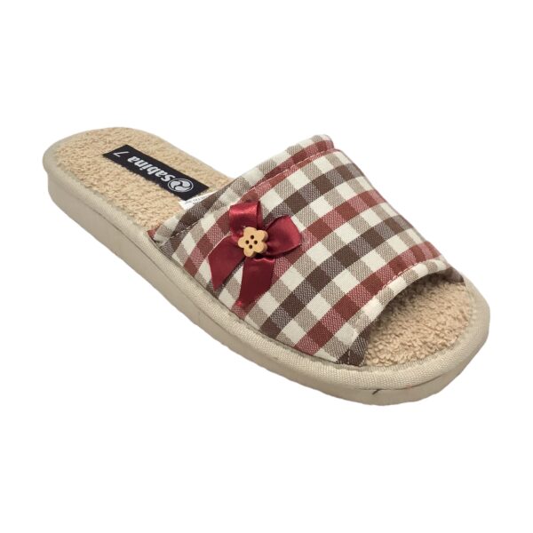 Γυναικείες παντόφλες καλοκαιρινές Sabina από 100% βαμβάκι , με μαλακό αναπαυτικό πέλμα και αντιολισθητική σόλα. Διαθέτουν κανονική φόρμα. Προϊόν ελληνικής κατασκευής.
