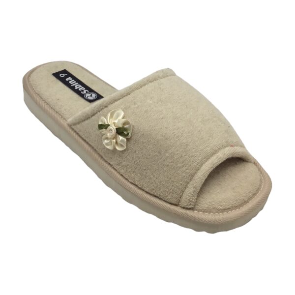 Γυναικείες παντόφλες καλοκαιρινές Sabina από 100% πετσέτα, με μαλακό αναπαυτικό πέλμα και αντιολισθητική σόλα. Διαθέτουν κανονική φόρμα. Προϊόν ελληνικής κατασκευής.