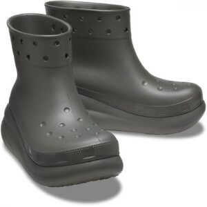 Οι καινούργιες γαλότσες της Crocs είναι η ιδανική επιλογή για τις βροχερές μέρες του χρόνου Με πρόσθετο ύψος και τολμηρή σχεδίαση δίνει μοναδικό και έντονο στιλ Η Classic Crush Rain Boot είναι μέρος της crush συλλογής της Crocs που ήρθε για να δώσει ”ύψος” στο στιλ σας .