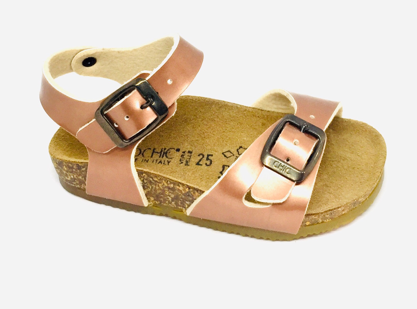 Κοριτσίστικο ανατομικό πεδιλάκι της εταιρείας BIOCHIC. Έχει δερμάτινο ανατομικό πάτο και υφασμάτινη φόδρα. Ελαφριά και αντιολισθητική σόλα. Ρυθμίζεται με δύο τοκαδάκια. Ιδανικό πεδιλάκι για καθημερινή χρήση. Σε χρυσό χρώμα.