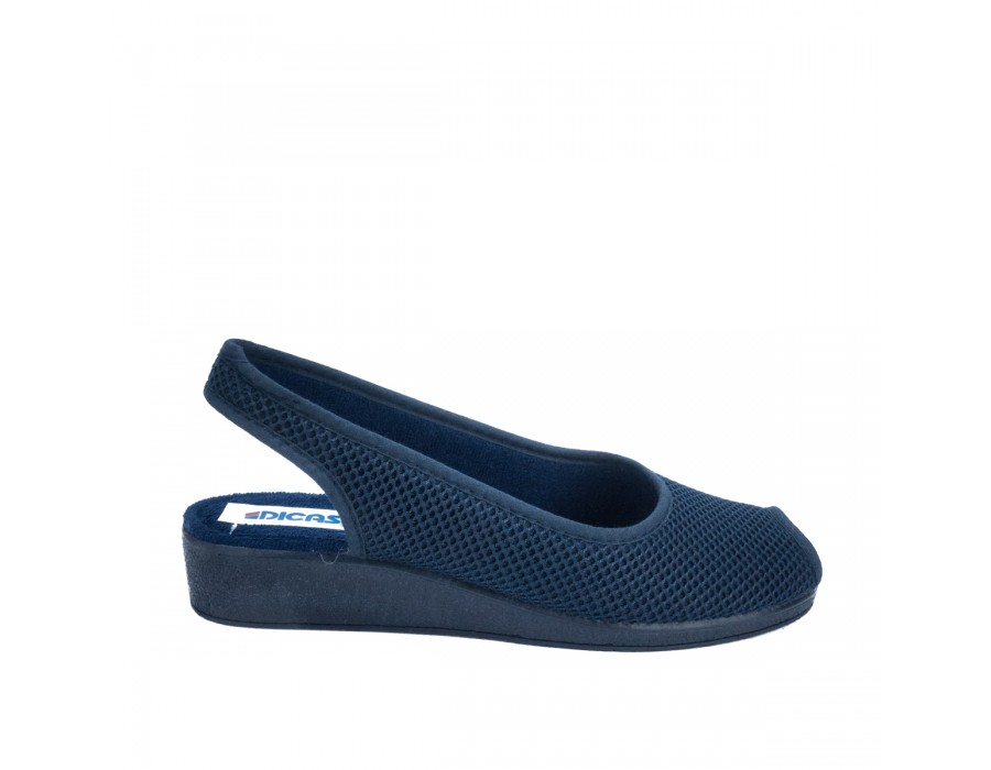 Γυναικείες κλασσικές, παντόφλες-πέδιλα Dicas. Λόγω της βαμβακερής εσωτερικής επένδυσης προσφέρουν άνεση και δροσερή αίσθηση. Αγκαλιάζουν σωστά τα πόδια δίνοντας έτσι σταθερότητα στα βάδισμα σας. Κατασκευασμένες εξωτερικά από ύφασμα με πόρους έτσι ώστε να αφήνουν τα πόδια να αναπνέουν. Τέλος η αντιολισθητική σόλα από λάστιχο τις κάνει να είναι μαλακές και ευλύγιστες για όλες τις ώρες,εντός και εκτός σπιτιού.
